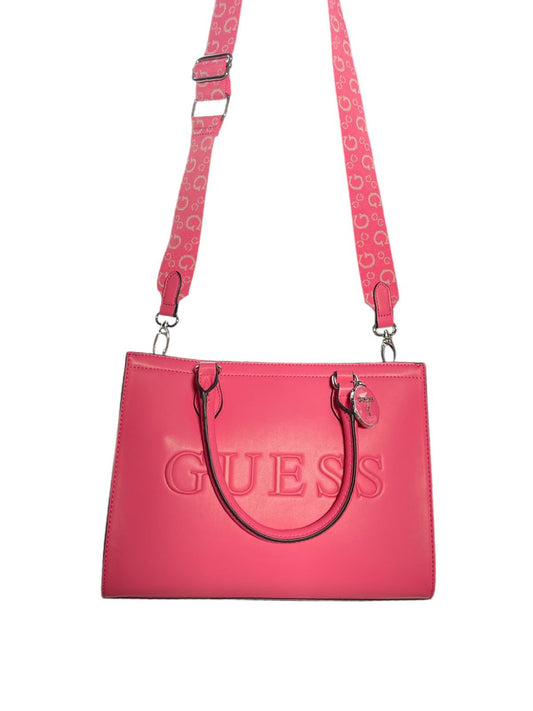 Bolsa Guess Fucsia con Logo en Relieve y Correa Ajustable